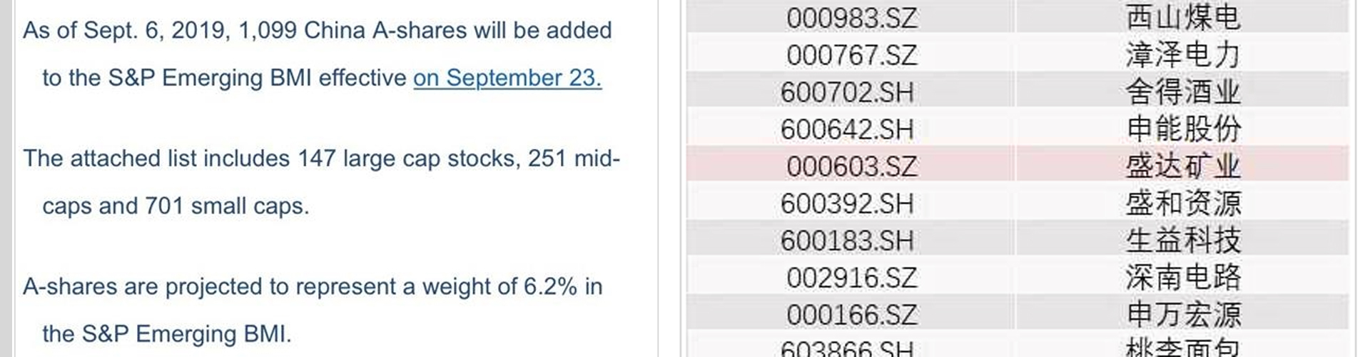2019Äê9ÔÂ9ÈÕ£¬£¬£¬£¬£¬£¬£¬£¬Ê¢´ï¿óÒµÄÉÈë±êÆÕÐÂÐËÊг¡Ö¸ÊýÃûµ¥
